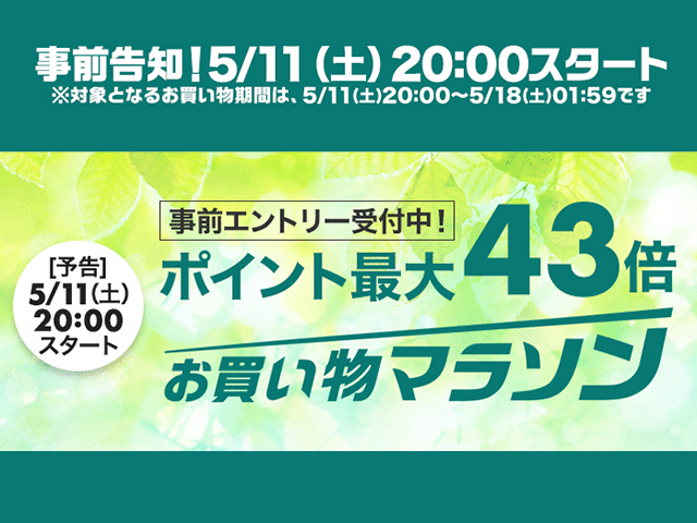 楽天市場お買い物マラソン 5/11(土)20:00スタート!