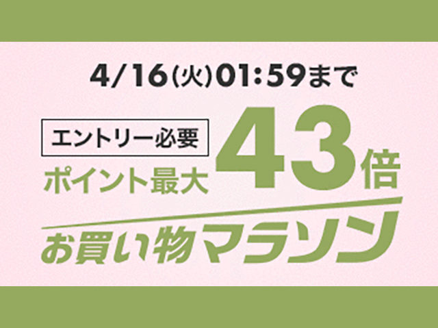 楽天市場お買い物マラソン 4/16 01:59まで!